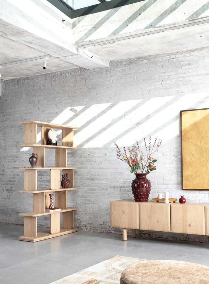 Unter dem Namen Azulaar finden Sie drei offene Schränke in der Kollektion, mit Höhen von jeweils 55, 114 und 187 cm. Alle drei Schränke können entweder an einer Wand aufgestellt oder frei im Raum platziert werden, sodass sie auch als Regal oder Raumteiler verwendet werden können. Mit einem Raumteiler können Sie ganz einfach die Einteilung Ihres Zimmers verändern. Ohne das transparente Raumgefühl zu verlieren, schaffen Sie zum Beispiel eine Trennung zwischen Ess- und Sitzecke oder einen ruhigen Arbeitsplatz. Gleichzeitig bietet der Raumteiler Stauraum für Bücher Wohnaccessoires, oder Platz für eine hübsche Pflanze.