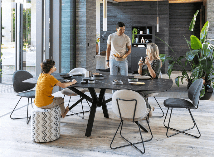 Nein, dieser Tisch kann nicht seine Farbe wechseln, aber die Tischserie ist in 5 verschiedenen Farbtönen erhältlich, die alle Luxus pur ausstrahlen! Die Tischplatten sind außerdem aus dem sehr pflegeleichten Primo Laminato (HPL): ein Material, das leicht zu pflegen, aber auch kratzfest und budgetfreundlich ist! Für Ihre Tischplatte stehen 3 verschiedene Farben zur Verfügung: Marmor-Look (Grau, Onyx und Weiß) und 2 Farben Stone-Look (Anthrazit und Rost). Diese Farbtöne haben alle einen luxuriösen Charakter. So können Sie Ihren Tisch ganz auf den Stil Ihres Esszimmers abstimmen!